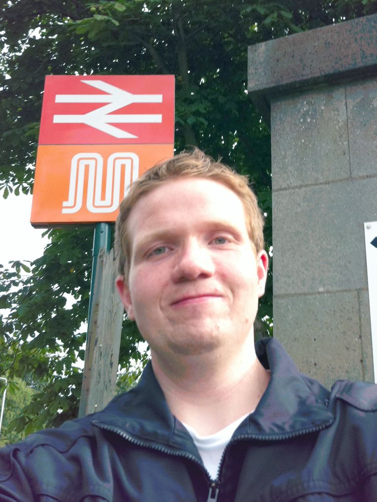 Photo of Robert posing underneath the Clifton station signThere was one small highlight – Clifton appears to have escaped the mass Transport for Greater Manchester rebranding exercise, and the roadside sign still proudly bears the original GMPTE logo in the hideous orange colour they used during the late 1980s. Look how pleased I am to be standing underneath it!
