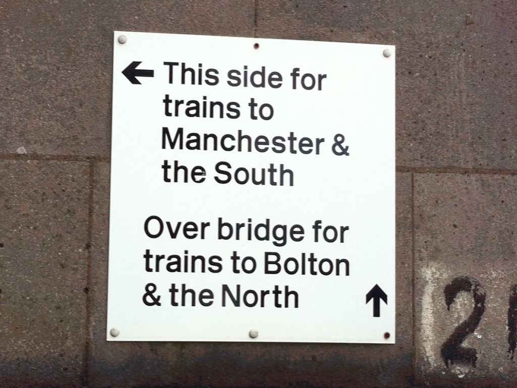 It was an uneventful run to Bolton, where I duly alighted and searched the departure board for my next train. My heart sank: the Manchester Airport train I needed was running late.