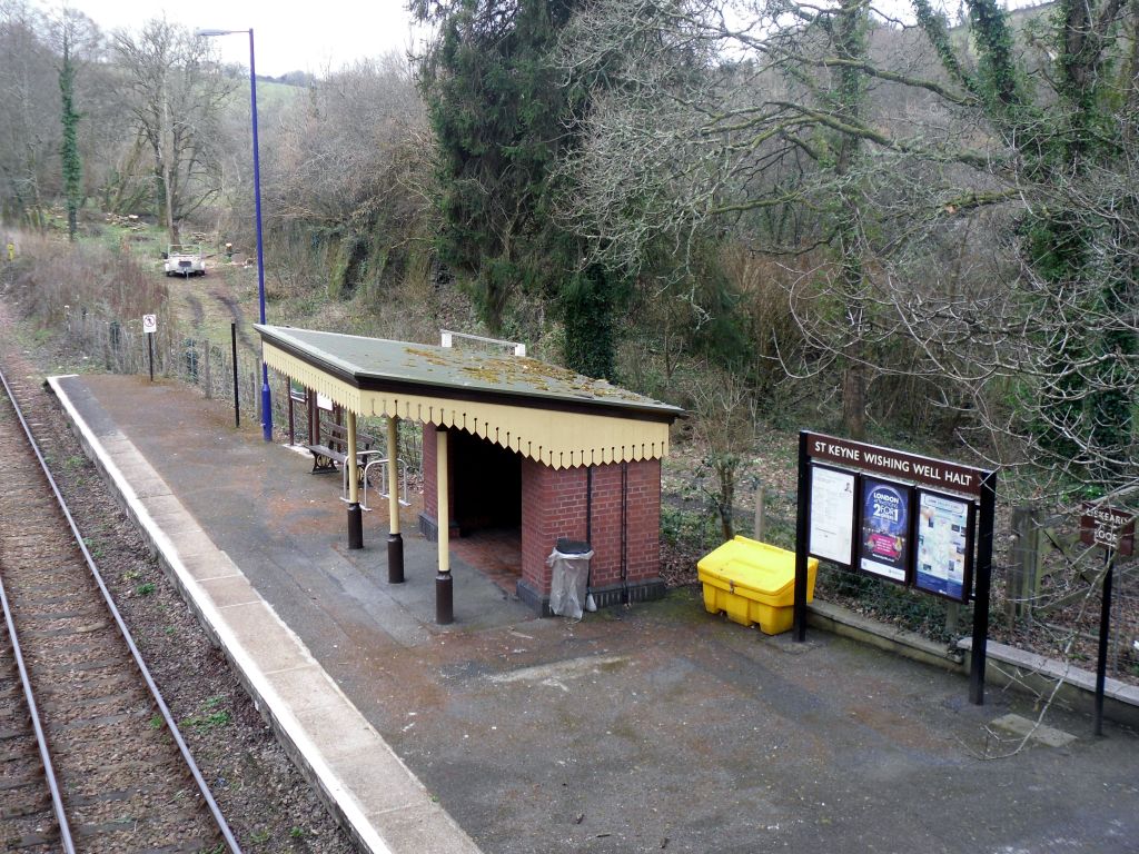 “Halt” is a railway term which has fallen into disuse. In times gone by it signified a station with no staff and only rudimentary passenger facilities. Of course, nowadays that description applies to half the stations on the network, so the word is usually unnecessary. St Keyne is one of only two stations on the whole National Rail system which still has the suffix applied. I can’t remember where the other one is.