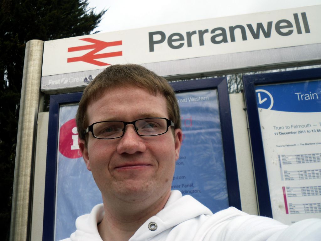 Whatever the charms of Perranwell, there wasn’t going to be time to see them on this visit. There was nothing left to do but get the customary picture of my ridiculously photogenic self under the station sign. This took a stupidly long time to get right, and the situation was made worse by a man on the platform staring at me as I fannied around in the station car park, which ratcheted my self-consciousness up to almost intolerable levels.