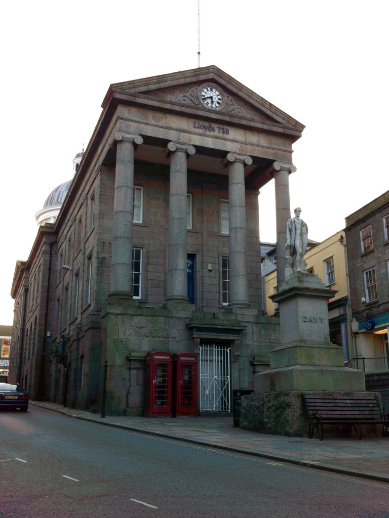 My hotel, located on the interestingly named Market Jew Street, turned out to be even closer to the station than it seemed from the map. I checked in, then went out for a nose around. Penzance is full of grand buildings (this is a bank) but again, it was evening and most places were closed for the night. There were pubs, of course, but for people like me, who are not particularly gregarious, they are not attractive places to visit alone (this actually turned out to be more of a problem the following night, when I had a couple of hours to kill before riding the sleeper train).