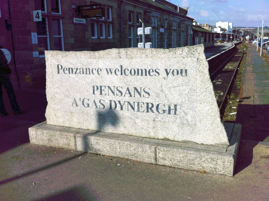 Penzance is the terminus of the Cornish Main Line, 300 miles and approximately 5 hours travelling time from London Paddington. It is southernmost station on the British railway network and the westernmost in England – contrary to popular belief, there is a station in Scotland, Arisaig, that is further west. We are deep into Cornish country here, as evidenced by the preponderance of bi-lingual signs, such as this inscription welcoming visitors in both English and Cornish.