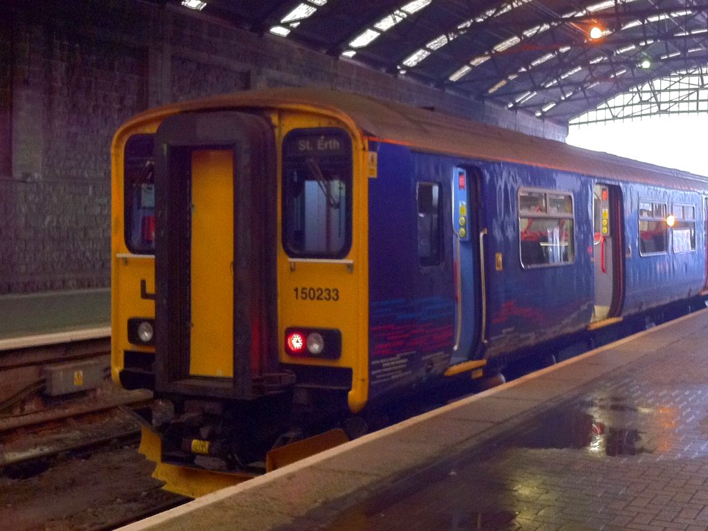 I arrived at Penzance on Thursday morning, to find another Sprinter simmering away under the cavernous roof. This was the 0857 to St Ives, one of a few trains on the line that start at Penzance rather than St Erth. During the summer the branch trains are rammed with tourists, but on an overcast Thursday morning in March I had the carriage more or less to myself.