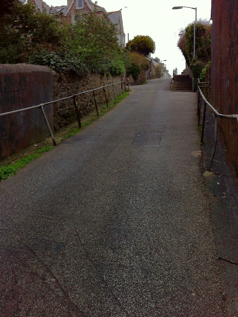 The main streets in St Ives are characterised by their narrowness and steepness. Below left is one of the main shopping streets. On the right is a side street I turned down. It was marked “unsuitable for motor vehicles”, although that didn’t stop a man in a white van attempting a hair-raising drive down it. Luckily, I was walking in the downhill direction – I wouldn’t fancy it the other way.
