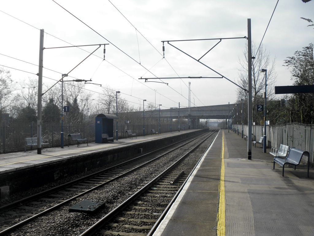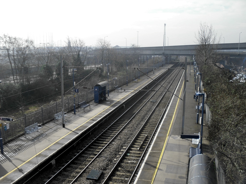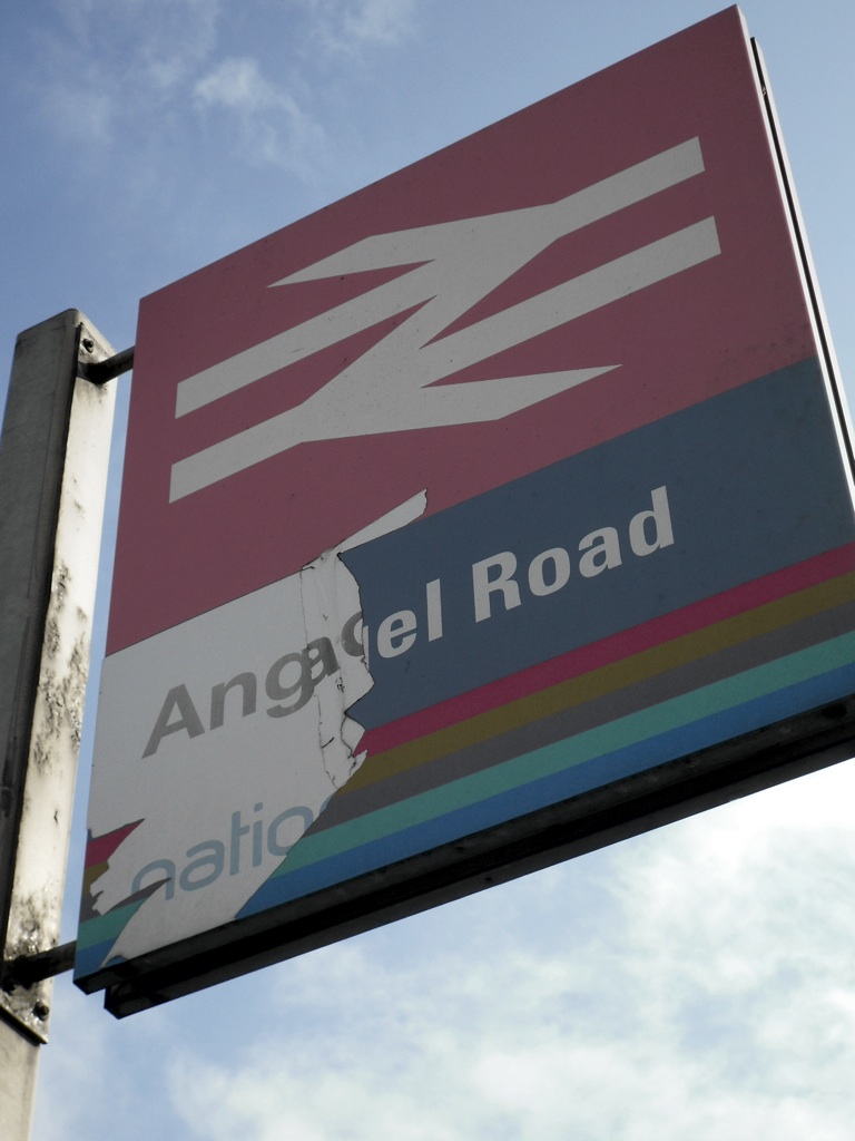 At the far end of the platforms, a road bridge crosses the railway. This is the Angel Road after which the station is named. However, Angel Road is now part of the A406, a terrifying, pedestrian-unfriendly, six-lane dual carriageway, and the station no longer has an exit there.