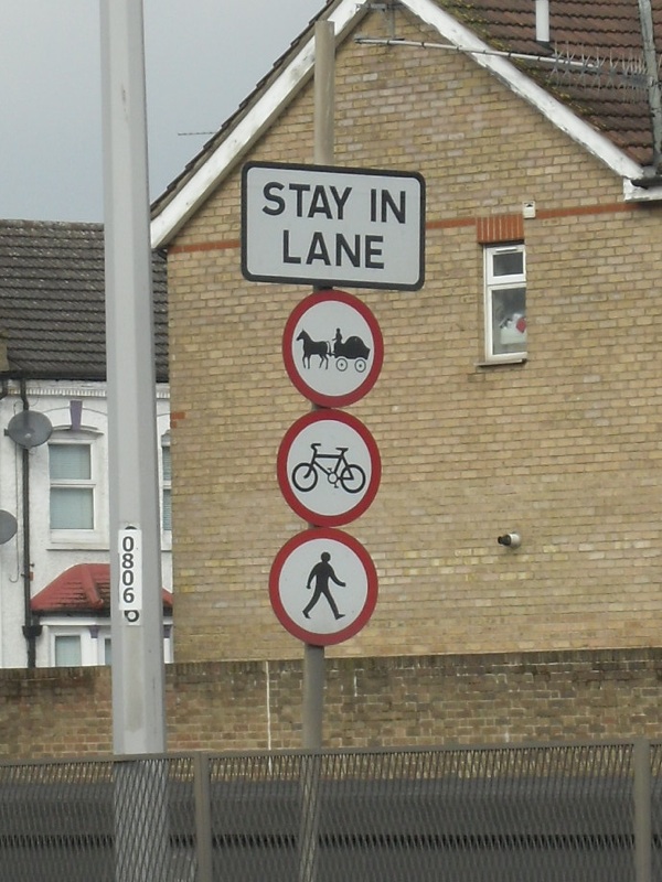 A little further along, and the A406 dives into a tunnel for a short length. The warning sign at the entrance, prohibiting horses and carts, seemed a little superfluous – although, in a world where a man can try to get a pony onto a train, you can’t be too careful, I suppose.