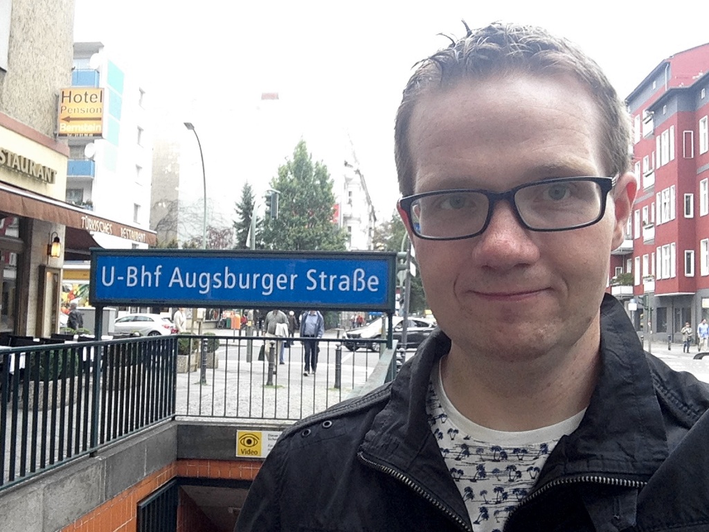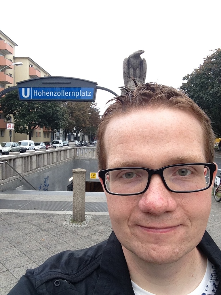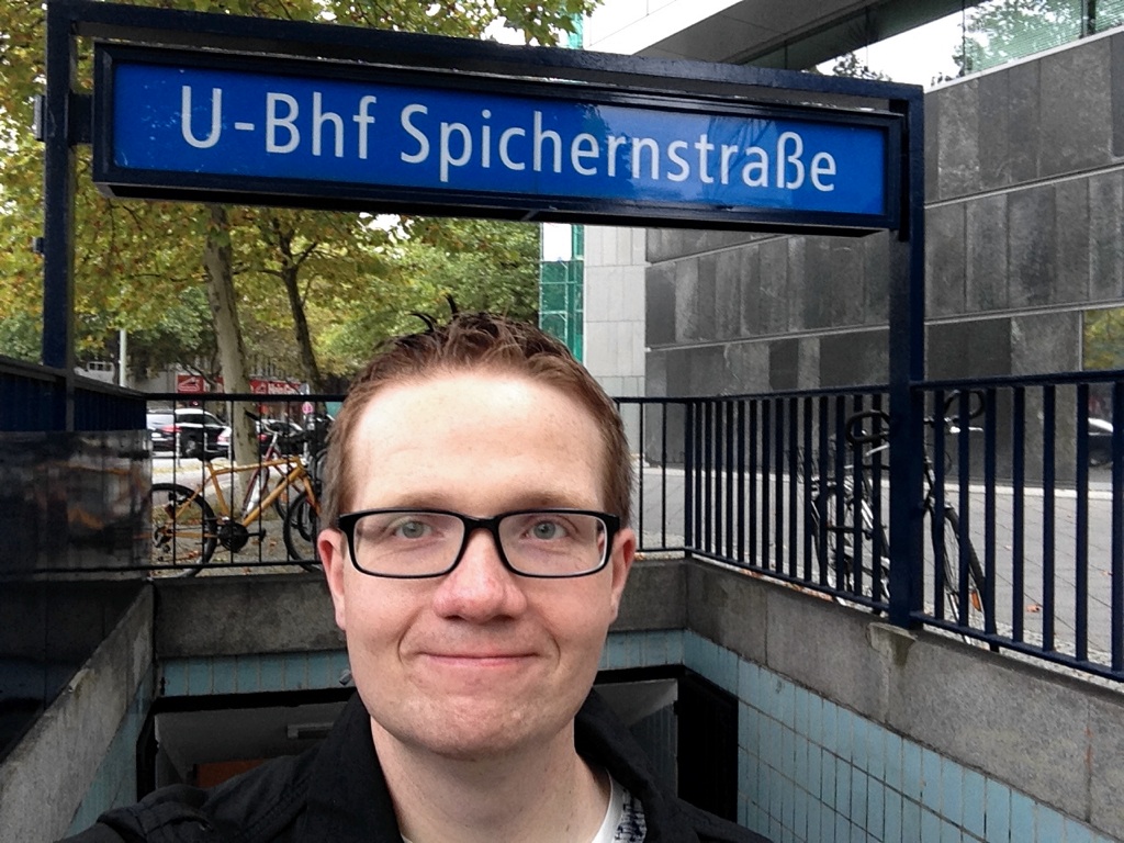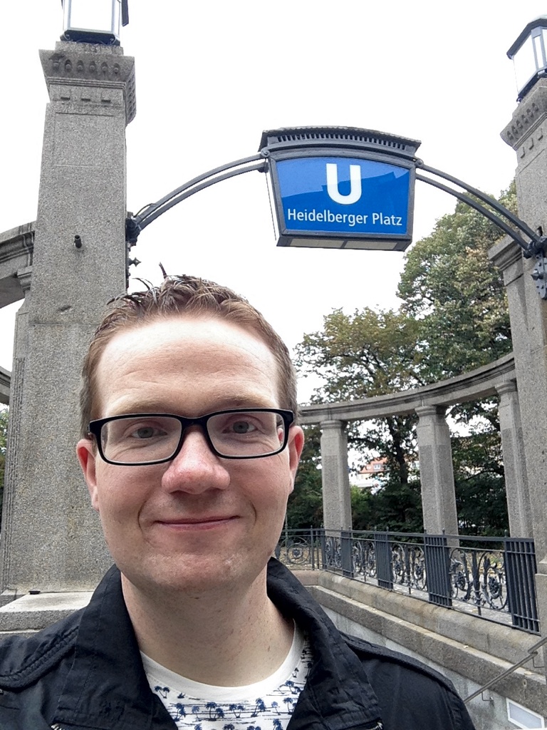 A few minutes later and I was at Breitenbachplatz. Take your choice of entrances: the original staircase, or a more recently added building with lift access. I went with the former for the selfie pic.