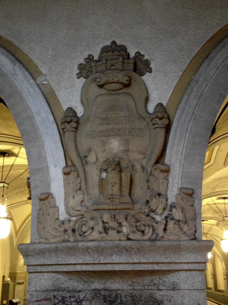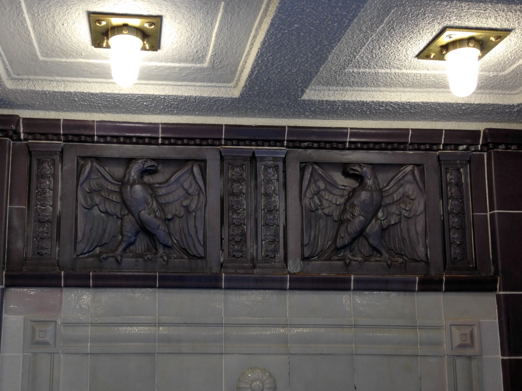 Walking down to the station platform, I saw that there was something of an eagle theme to the station: they were carved into the tilework too.